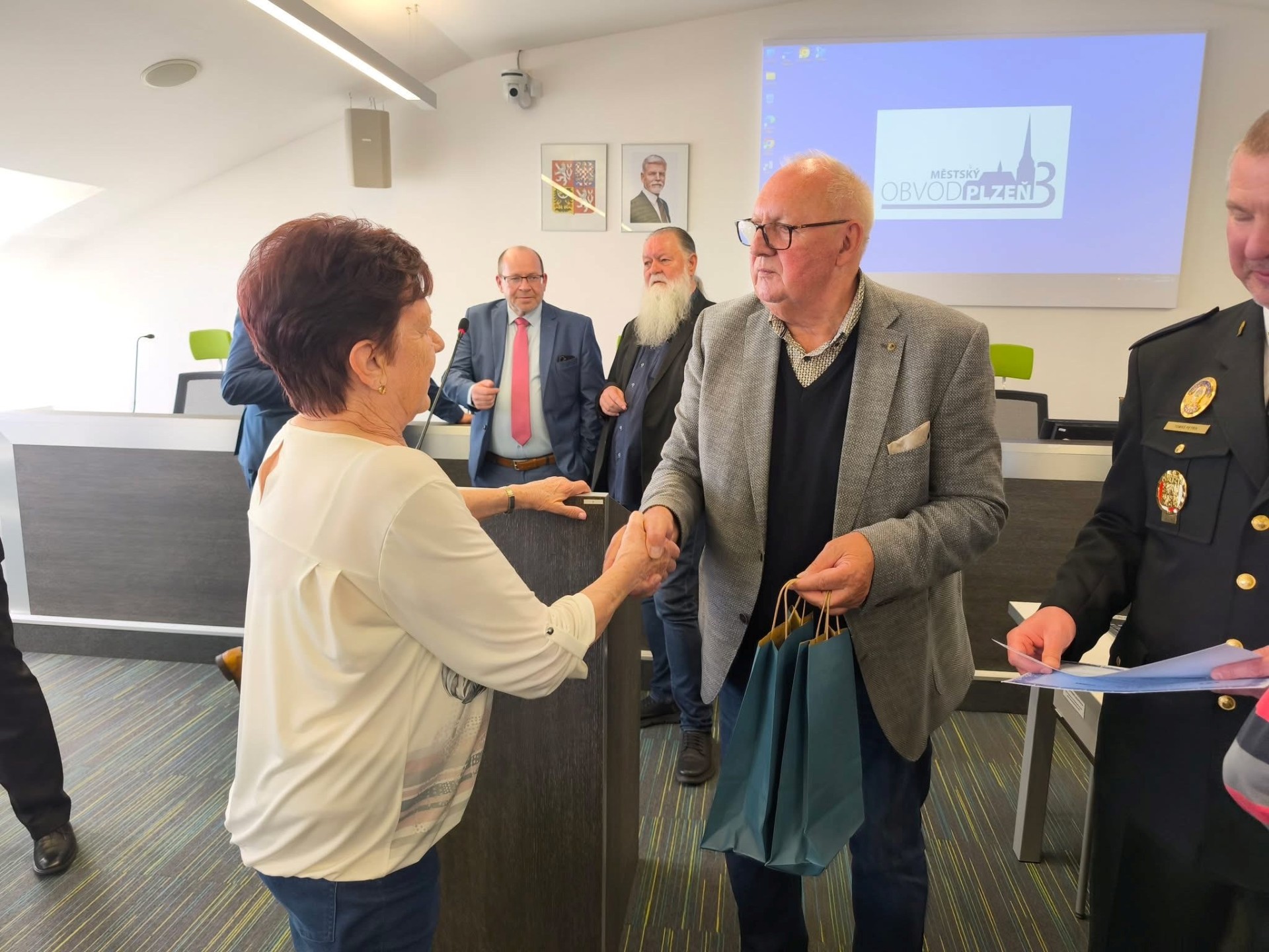 Pozdravit seniory přišli zástupci vedení všech čtyř obvodů: za Městský obvod Plzeň 1 dorazil místostarosta Jiří Uhlík, za Městský obvod Plzeň 2 - Slovany starosta Lumír Aschenbrenner, za domácí třetí obvod se zúčastnil starosta David Procházka a Městský obvod Plzeň 4 vyslal místostarostu Václava Berana.