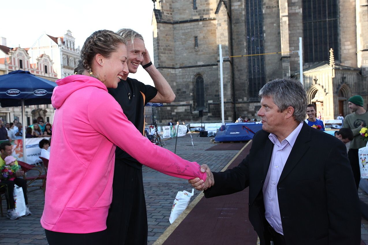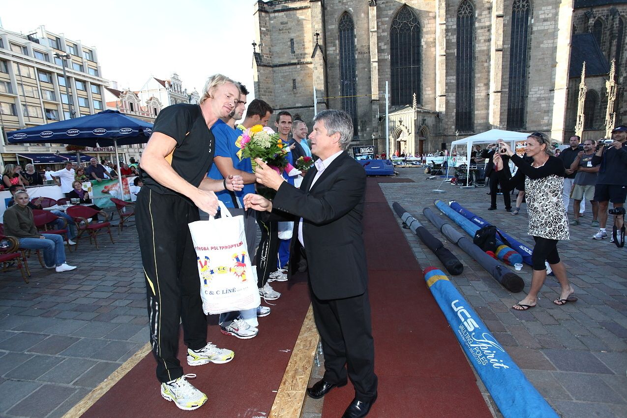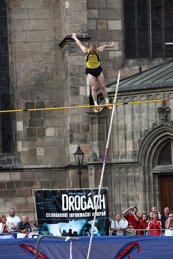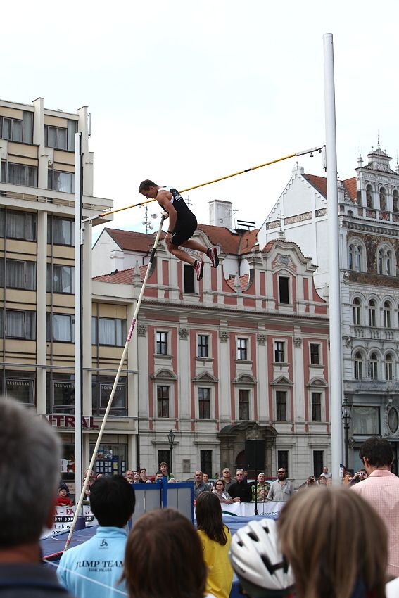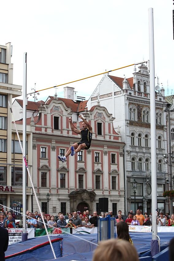 Plzeňská tyčka - 25.srpna 2010 Zpět na výpis fotogalerií Skokani o tyči se sjeli do Plzně. Skákali přímo na plzeňském náměstí.