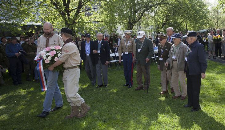 Slavnosti svobody Zpět na výpis fotogalerií Pietní akty v Husově ulici, na Chodském náměstí a na náměstí Míru